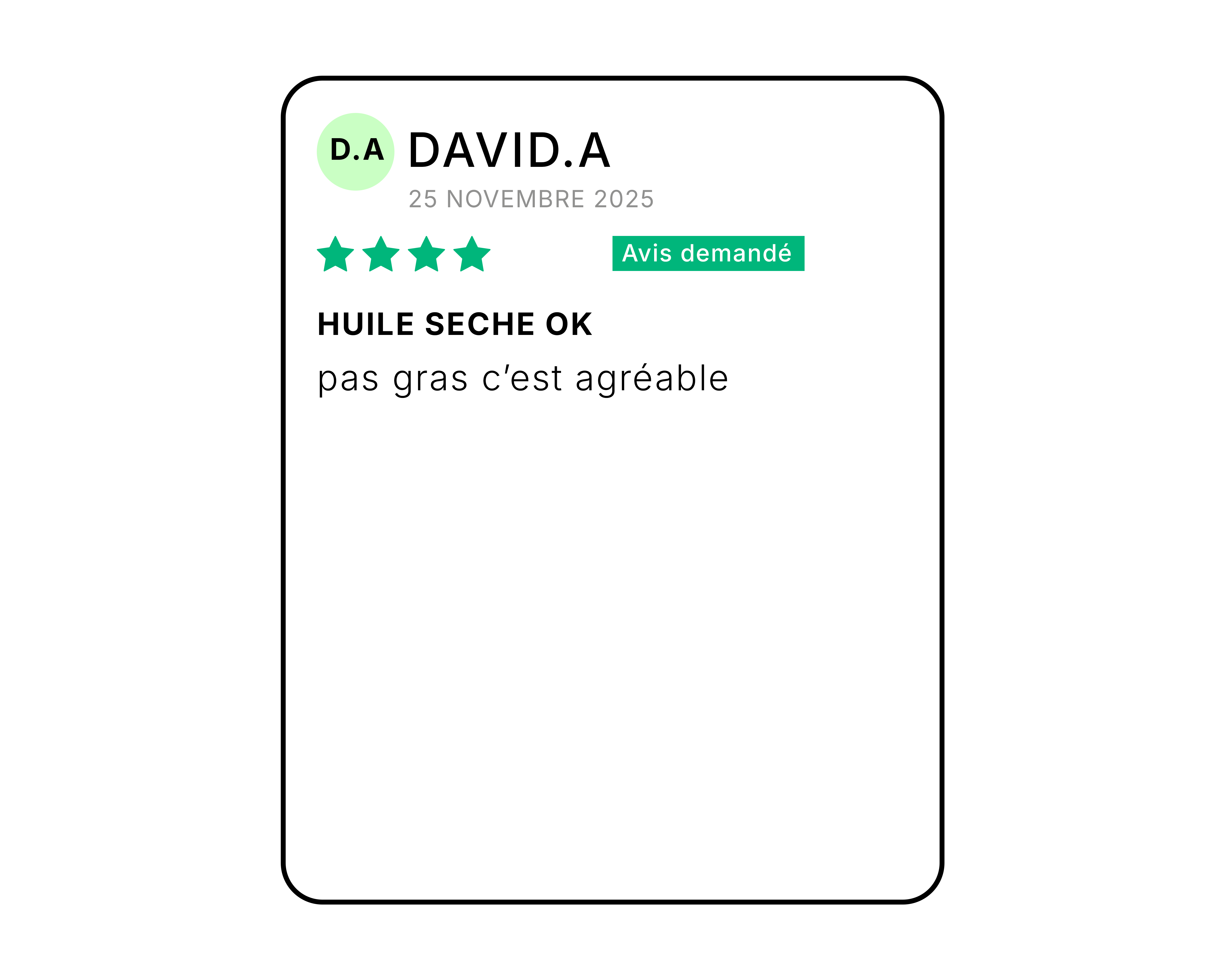 Une vraie huile sèche avec mélange de 5 huiles et non gras.