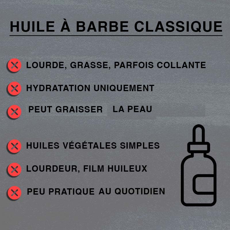 Sur le marché, on trouve de nombreuses huiles pour barbe, mais rien de vraiment adapté aux barbes de 3 à 5 jours : aucun produit ne permettait de bien entretenir ce type de barbe tout en apportant confort au poil et à la peau.
